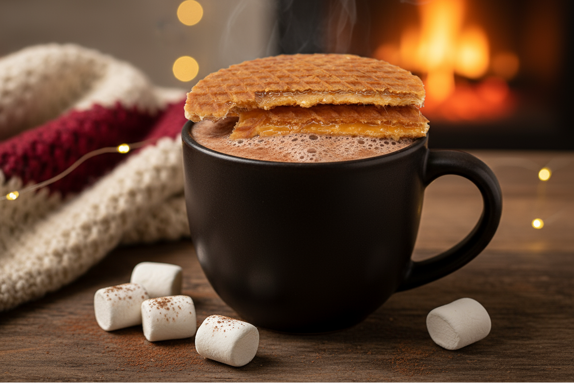 Hot chocolate makes the pairing feel indulgent and cozy. The rich chocolate brings out the deeper caramel tones in your stroopwafels, and the heat softens the waffle into a smooth, dessert-like texture. Chocolate salted caramel fits this pairing especially well, but vanilla also creates a balanced, comforting combination. This is an easy recommendation for anyone looking for a treat that feels special.